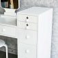 Bàn trang điểm kết hợp chân tủ đựng đồ HA3 có kích thước 110x50x930cm phủ bì, được làm từ chất liệu gỗ cao su ghép tiêu chuẩn AA, sơn PU chống thấm, cửa hộc kéo được sơn trắng, được kết hợp với chân sắt sơn tĩnh điện màu trắng và khung gương bằng gỗ, hộc kéo cửa sơn đen tạo điểm nhấn cho sản phẩm. Với kích thước chiều dài chỉ 110cm, bàn trang điểm kết hợp chân tủ đựng đồ rất phù hợp với các phòng ngủ có diện tích nhỏ.