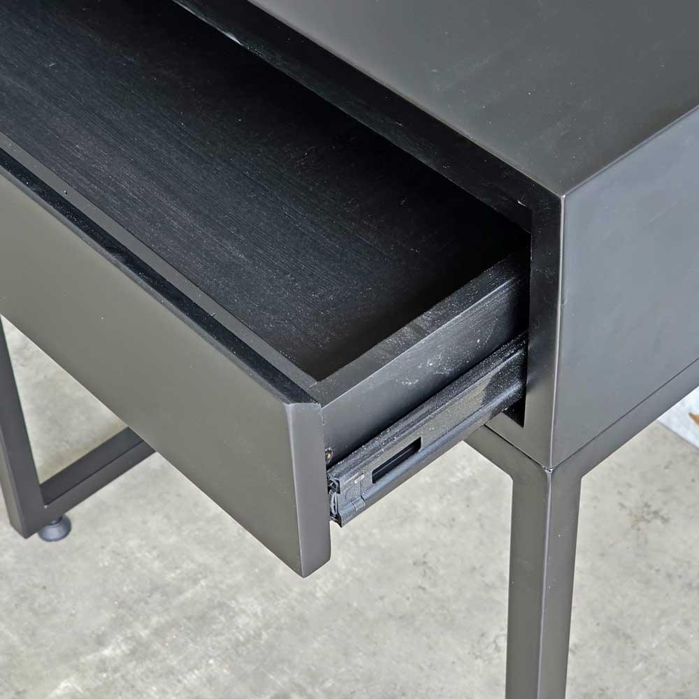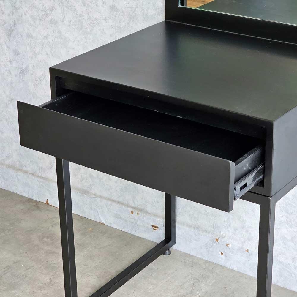 Bàn được trang bị 1 ngăn kéo rộng rãi, giúp bạn dễ dàng cất giữ các vật dụng trang điểm và đồ dùng cá nhân. Ngăn kéo không sử dụng tay nắm mà được vát cạnh, tạo sự tinh tế và hiện đại cho sản phẩm. Với chất liệu được làm bằng gỗ cao su AA, chuẩn xuất khẩu, đã được xử lý chà nhám mịn màng và phủ sơn chống thấm nước, đảm bảo độ bền đẹp theo thời gian.