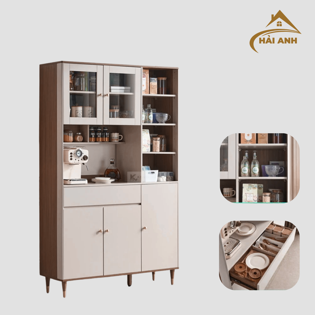 Khoang mở giữa: phù hợp đặt máy pha cà phê, ấm siêu tốc, hoặc làm quầy mini bar.